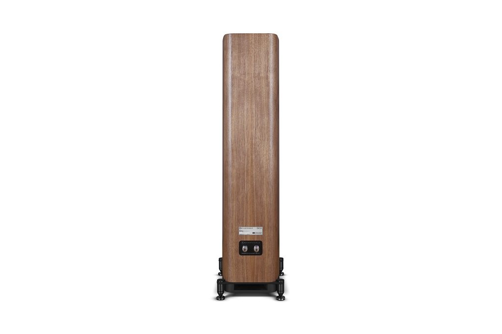 Корпус EVO 5 выполнен по многослойной сэндвич-технологии, подавляющей резонансы, а элегантный дизайн с плавными изгибами доступен в матовых черном, белом и новом оттенке «Lunar Grey»(серый), а также в классическом варианте из натурального орехового шпона.