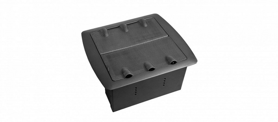 TBUS-20XL(WAVES) — элегантный встраиваемый в поверхность стола модуль для подключения кабелей. Специальные волнообразные подъёмы края крышек в местах прохода кабелей позволяют держать крышки закрытыми при сохранении кабельного подключения. На основе TBUS-20XL можно создавать разнообразные конфигурации точек подключения, используя приобретаемые отдельно внутренние рамки, модульные вставки с розетками питания и различными разъёмами, а также кабельные ретракторы из широкого ассортимента Kramer.