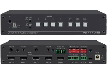 [VS-411UHD] Коммутатор 4х1 HDMI и аналогового аудио с автоматическим переключением; коммутация по наличию сигнала, поддержка 4K, Step-In, эмбеддирование/деэмбеддирование аудио