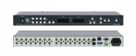 - Разнообразие возможностей управления - с передней панели, через интерфейсы RS-232 и RS-485 (управляющая программа K-Router® для Windows предоставляется бесплатно), c ИК-пульта (в комплекте), через сеть Ethernet
