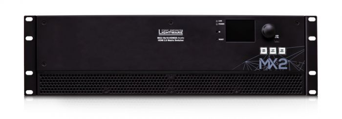 MX2-16x16-HDMI20-Audio - новый матричный видео коммутатор от компании Lightware, входящий в серию оборудования матричной коммутации сигналов HDMI 2.0 с поддержкой несжатых 4K UHD разрешений с частотой 60Hz 4:4:4, а также поддержкой функционала для выстаивания и извлечения аудио сигнала из потока HDMI.