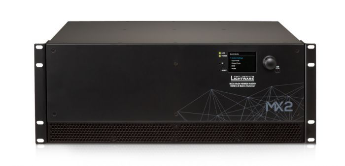 MX2-24x24-HDMI20-Audio - новый матричный видео коммутатор от компании Lightware, входящий в серию оборудования матричной коммутации сигналов HDMI 2.0 с поддержкой несжатых 4K UHD разрешений с частотой 60Hz 4:4:4, а также поддержкой функционала для выстаивания и извлечения аудио сигнала из потока HDMI.