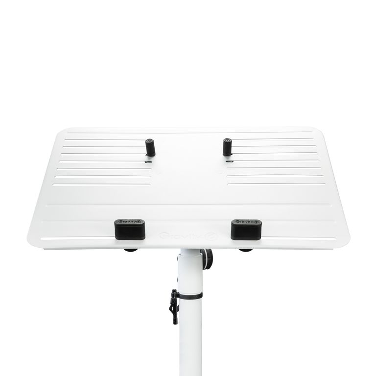 Универсальная подставка Gravity LTS T 02 W решает проблему с необходимостью найти место под ноутбук или планшет для исполнителей и музыкантов, а также подходит как решение с расположением рабочего места дома или в офисе. Подставка подходит для всех ноутбуков и планшетов с диагональю 12 до 17 дюймов. Четыре фиксатора обеспечивают надежное положение ноутбука, при необходимости их можно снять. Вентиляционные отверстия обеспечивают своевременное охлаждение техники. Подставка регулируется по наклону, что позволяет использовать ее как в горизонтальном, так и в вертикальном положении. Gravity LTS T 02 W оснащена стальным надежным основанием, а высота регулируется от 79 до 129 см, что позволяет ее использовать как сидя, так и стоя людям с разным ростом.