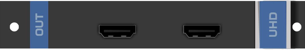 UHD-OUT2-F16 – двухканальный выходной модуль HDMI c поддержкой разрешений до 4K@60 Гц, 4:2:0, предназначенный для использования в составе шасси мультиформатного модульного матричного коммутатора серии VS-1616. Модуль осуществляет вывод двух сигналов HDMI из модульного шасси.